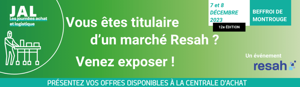 L’espace «Resah Expo» permet exclusivement aux titulaires d’un marché Resah de réserver un stand pour présenter leurs offres disponibles à la centrale d’achat.